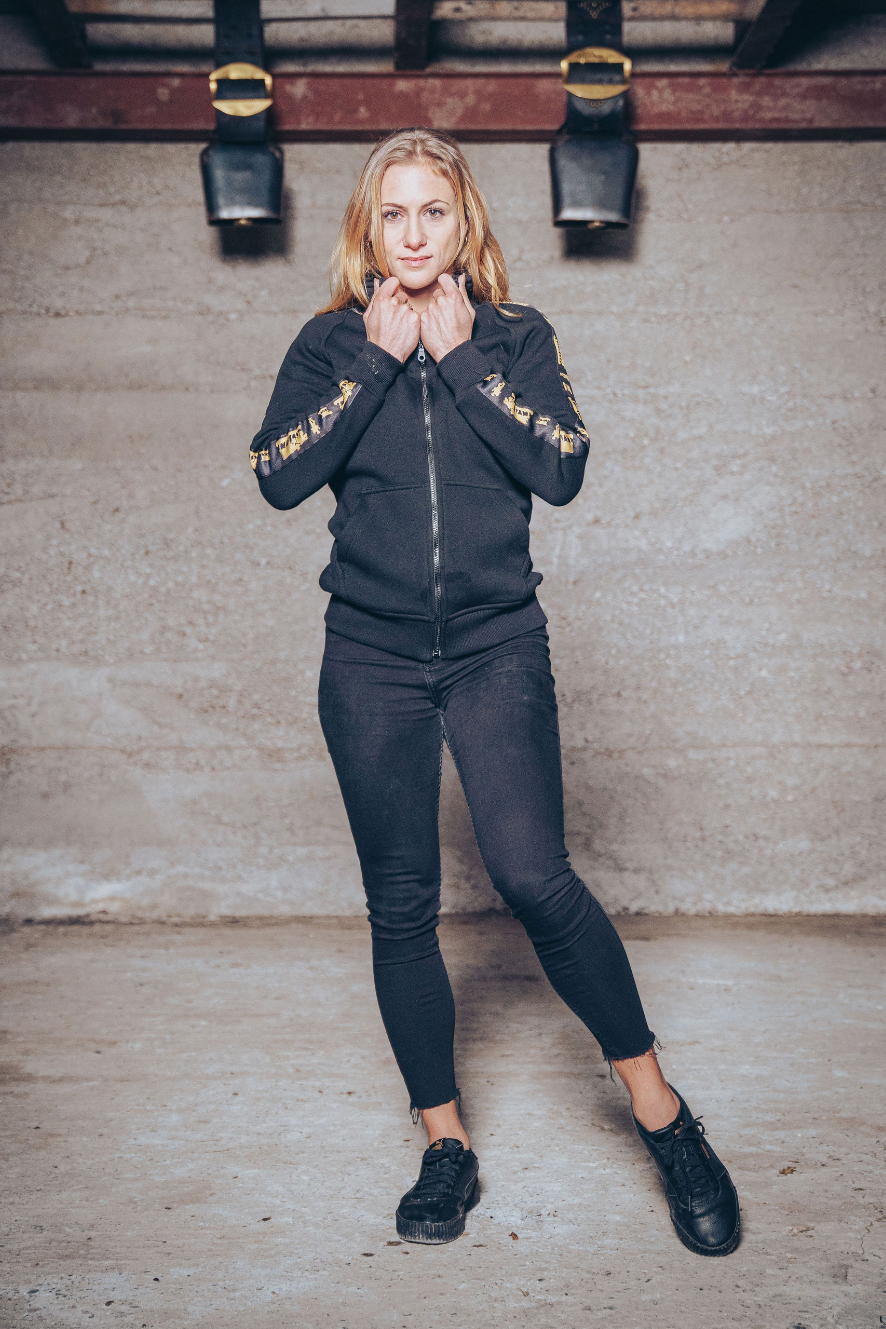 Das charakteristische Merkmal dieser Jacke sind die auffälligen Alpaufzug-Streifen an den Armen, die in sorgfältiger Detailarbeit eingearbeitet wurden. Dies verleiht der Jacke einen unverwechselbaren Look, der Tradition mit modernem Stil vereint.