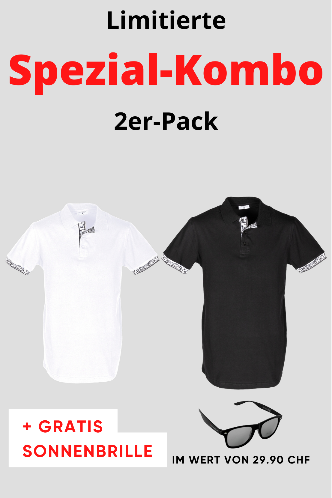 Herren 2er Kombo Scherenschnitt Polo + Gratis Brille