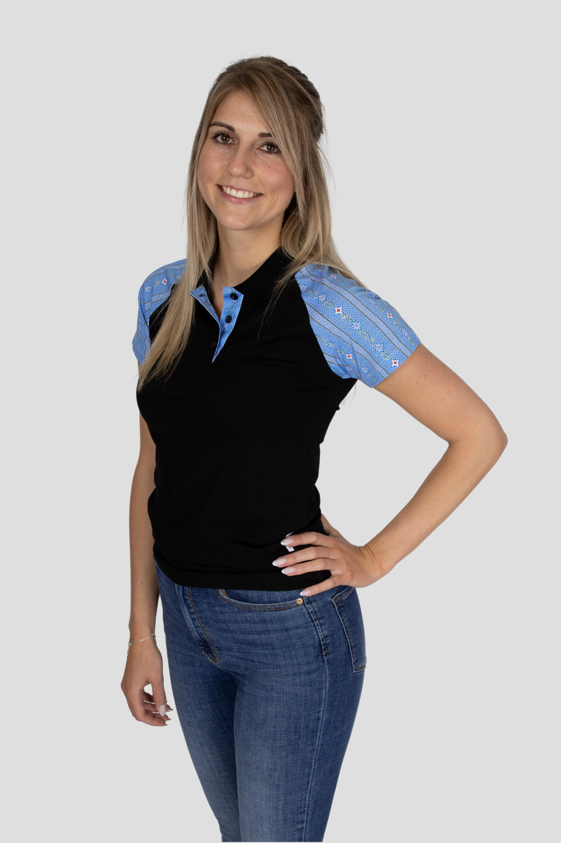 - Polo Shirt Schwarz mit blauem Edelweiss