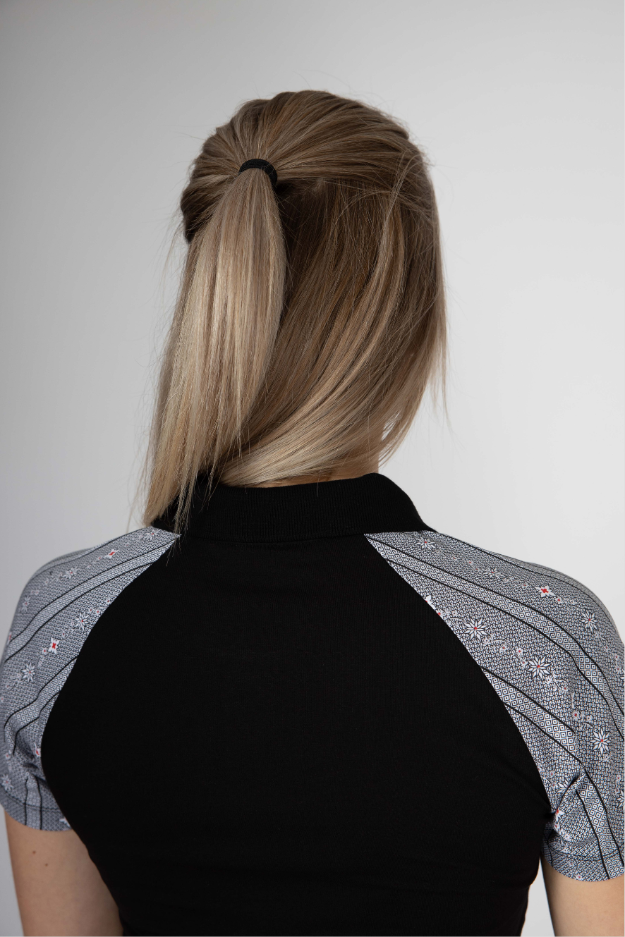 - Polo Shirt Schwarz mit grauem Edelweiss