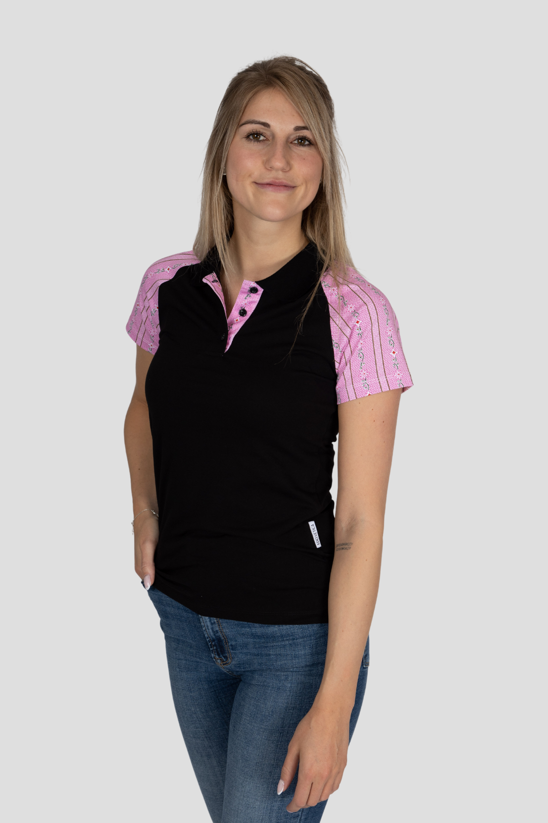 - Polo Shirt Schwarz mit pinkem Edelweiss