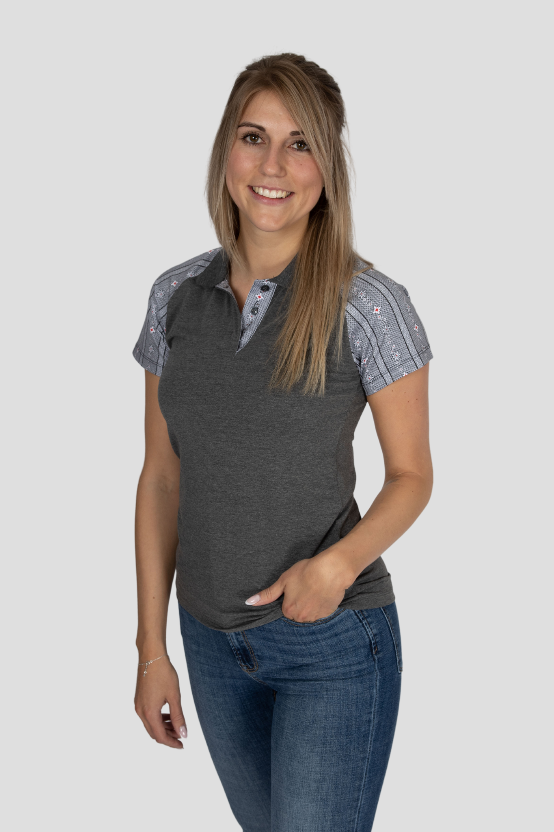 - Polo Shirt Grau mit grauem Edelweiss