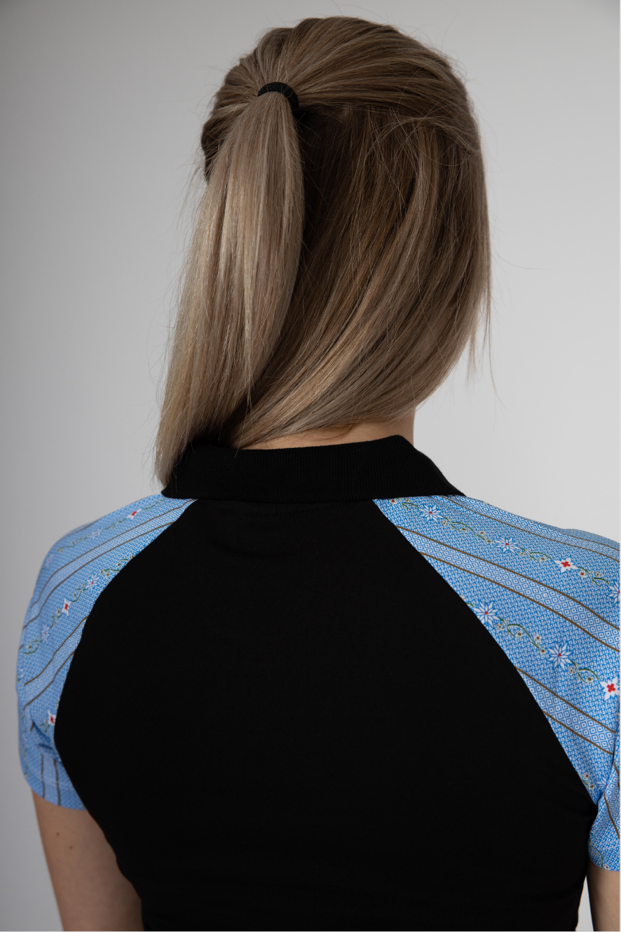- Polo Shirt Schwarz mit blauem Edelweiss