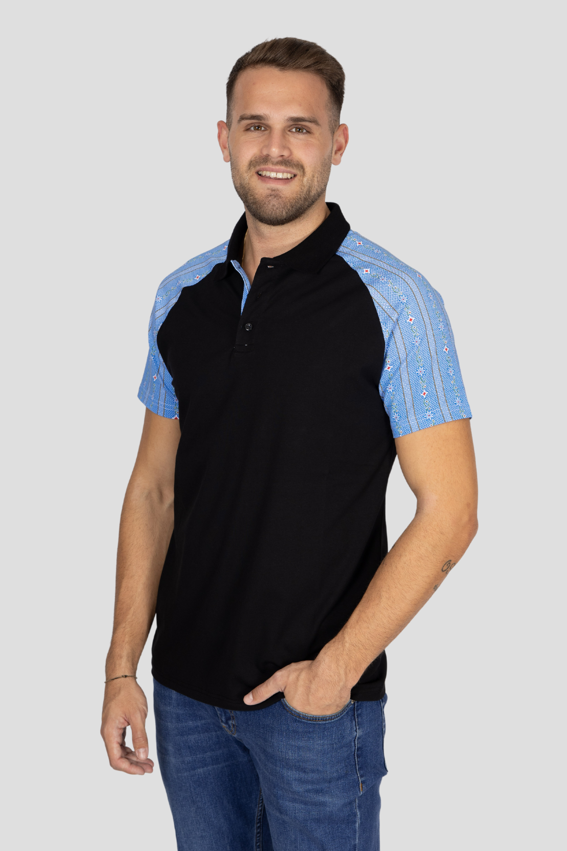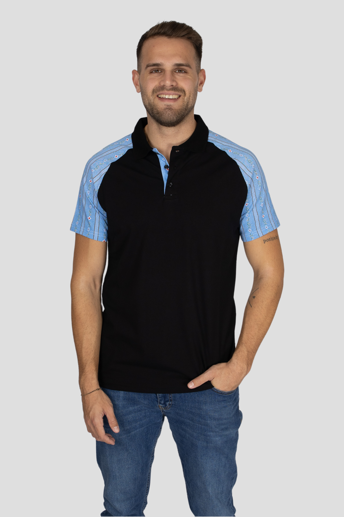 - Polo-Shirt Schwarz mit blauem Edelweiss Arm
