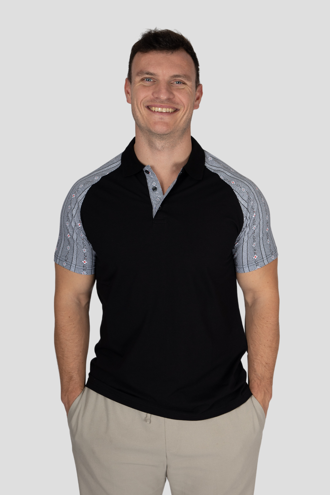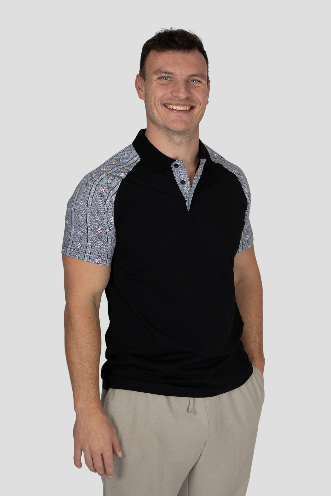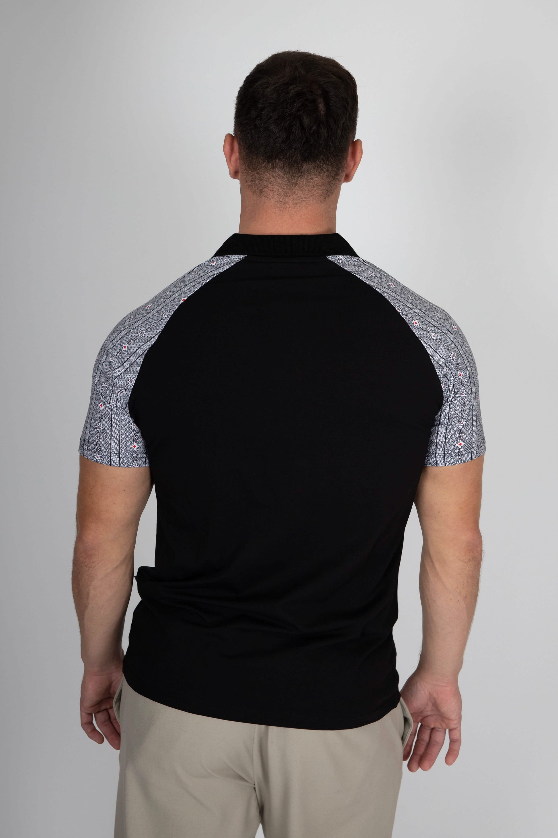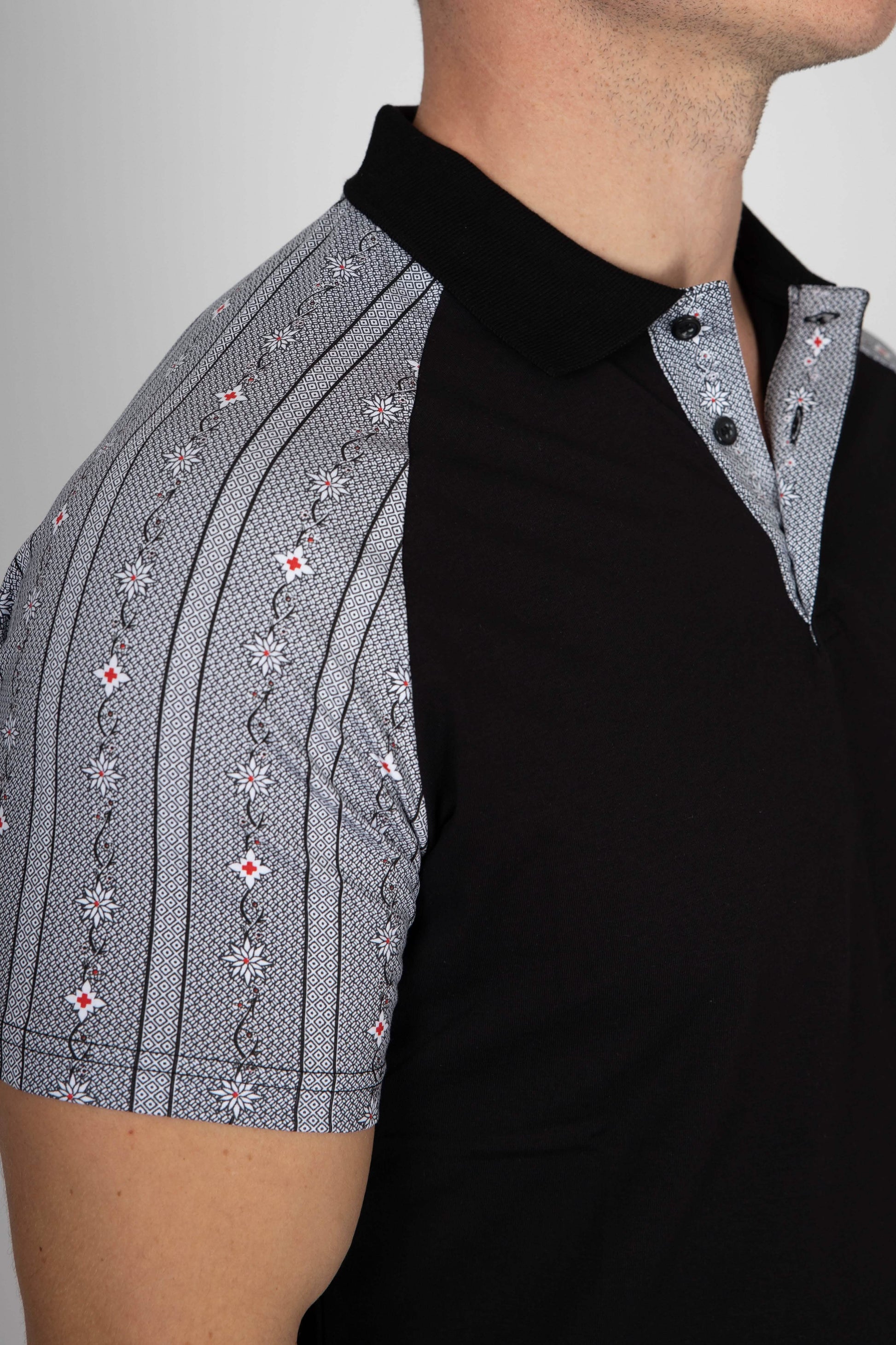 - Polo-Shirt Schwarz mit grauem Edelweiss Arm
