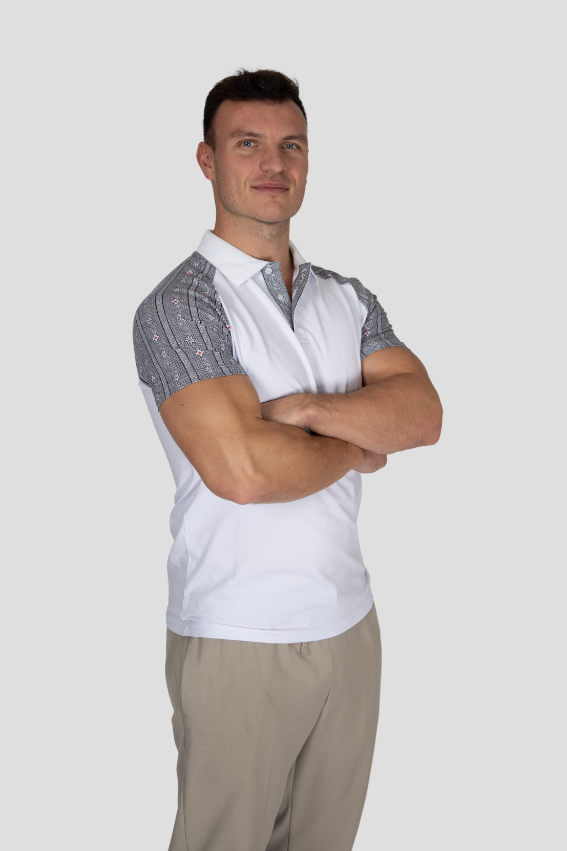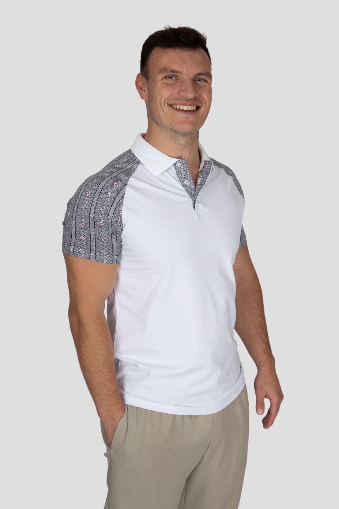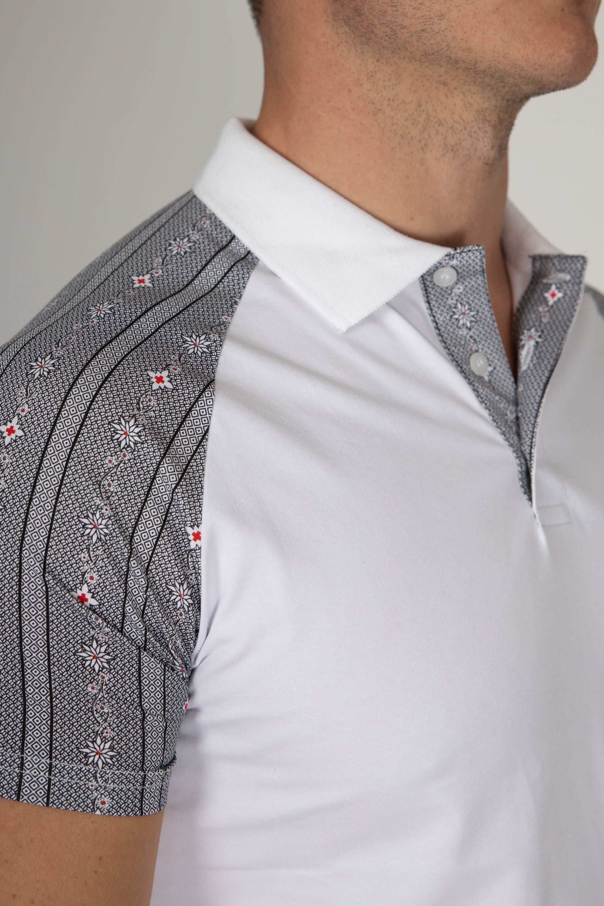- Polo-Shirt Weiss mit grauem Edelweiss Arm